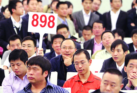 楼市的火爆行情直接推升着土地市场的热度。11月5日,苏州再度上演了一场土地争夺大战,诸多开发商和个人一掷千金使得整个土地拍卖会现场弥漫着“硝烟”。此次苏州共推出42宗地块总占地面积达到208.5万平方米左右,除2宗地块无人报名参拍而流拍,4宗地块仅有一意向受让人而底价成交外,现场竞价的地块几乎无一不受到热捧,数度出现地价翻倍行情。