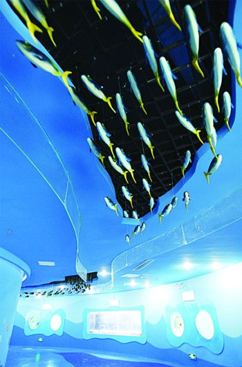 去年10月,由新加坡铃兰海洋生物有限公司投资兴建的苏州海洋馆开馆迎客,位于苏州太湖国家旅游度假区中心区内的这一特色旅游项目,为“太湖绿色生态游”再添亮点。馆内分为水族馆、潜水馆(室内潜水训练基地)和海洋剧场等三个主题部分。游客来此,可以观赏到众多珍稀水生物。潜水馆水量1800吨、水深15.8米,是目前亚洲最深的室内潜水馆。海洋剧场是集海洋动物表演、水上芭蕾、杂技、滑稽魔术等为一体的综合性场所,可以容纳1200人同时观赏。剧场内还设有多媒体互动厅、海洋科普厅、3D影院等,充满奇幻色彩。