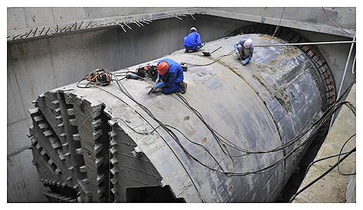 记者在现场看到,为保证施工地面不发生沉降以及防止渗水,在盾构机推进的同时,施工人员同步进行灌浆和加注聚氨酯,使得起到密封作用。
