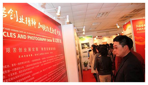 2月21日,“弘扬艰苦创业精神、加快推进转型升级”征文图片展在金鸡湖畔的苏州工业园区管委会老楼开展。展览以大量的历史图片和回忆性文章再现了园区15年所走过的发展历程。