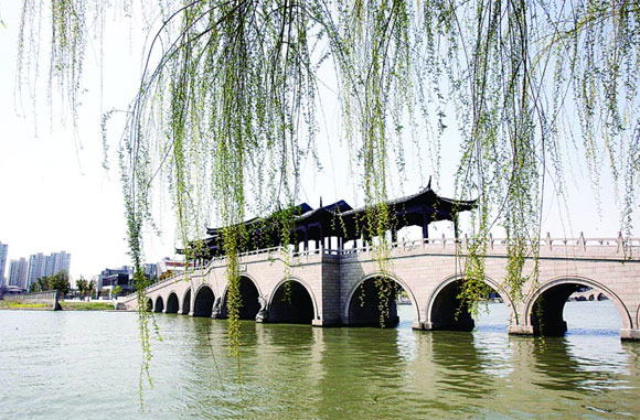 由星湖街转入苏胜路,参赛者们将会在迎曦桥上欣赏到有着美丽传说的琼姬敦。据说,琼姬原为吴王夫差的女儿,聪慧美丽、深受百姓喜爱,故其所葬之地被称为“琼姬敦”。从迎曦桥上向西眺望,两岸春和景明、绿草茵茵,惠风和畅、繁华似锦,给每一位坚持前行的参赛者以心灵的慰藉。
