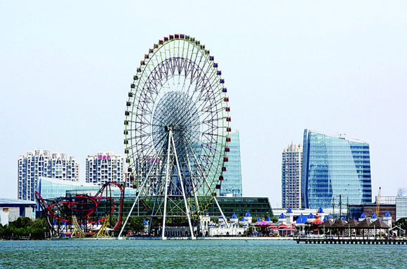 由现代大道转入圆融时代广场,奔跑在这个时尚消费街区的大街小巷,感觉颇为奇妙。穿过壮如巨扇的国际博览中心,越过文化水廊,直径120米的巨型摩天轮映入眼帘。七彩流光的摩天轮在澄澈的蓝天下徐徐转动,像一个巨人伫立在美丽的金鸡湖畔,俯瞰着脚下这片幸福的土地。参赛者将从摩天轮公园门前经过,近距离地感受童话般的欢乐氛围。