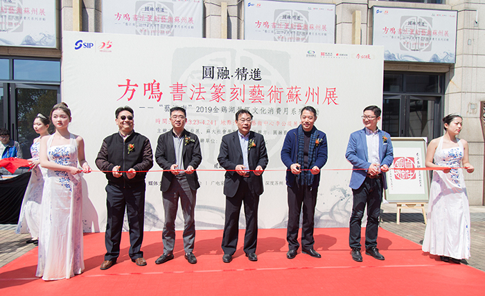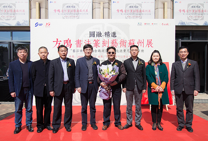3月23日上午10:00,由新建元旗下圆融发展公司、苏大社会学院主办,圆融艺术中心承办,中傲智能、兰台文化鼎力支持的“圆融•精进”方鸣书法篆刻艺术苏州展在李公堤文创街区顺利开幕。