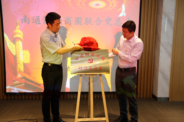 会上,学田街道党工委副书记胡建华宣读了《南通崇川区学田街道党工委关于同意成立南通圆融商圈联合党总支》的批复。学田街道党工委书记张飞和新建元圆融发展党总支委员、副总裁薛峰共同为南通圆融商圈联合党总支揭牌。
