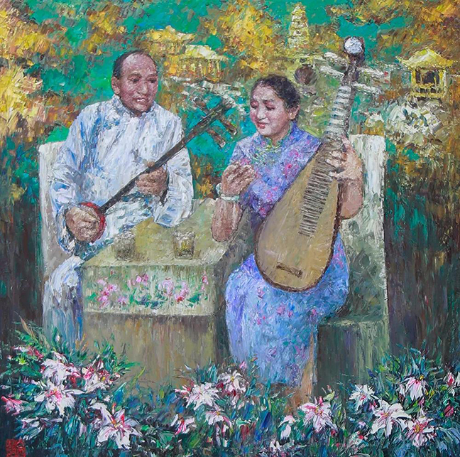谢金发老师的作品中往往以和谐恬美的色彩、扑面而来的生活气息和浓厚的思乡之情,带给观者们极其强烈的共鸣。因此,观赏谢金发老师的油画,不仅仅是一种专业的学术交流,更是一种超越专业的情感交流。