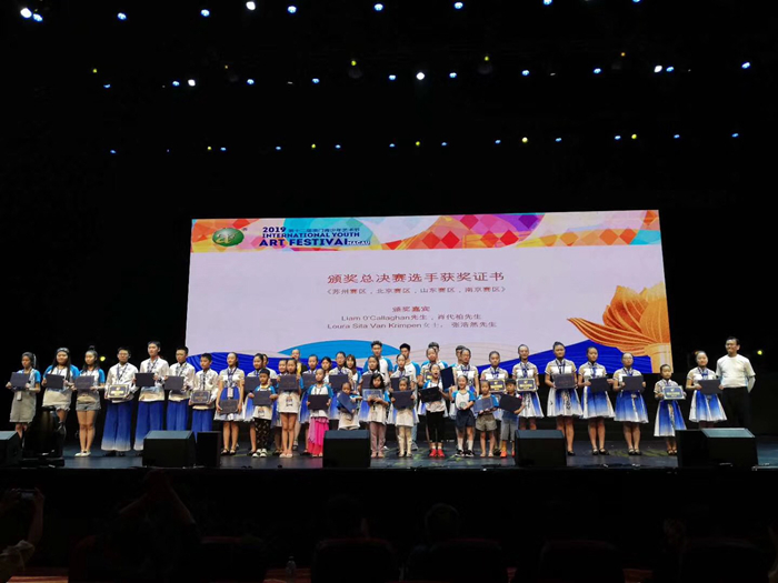 经过紧张地化妆、调音等准备工作,孩子们自信地站在了舞台上。新民乐团为大家带来了精心编排的合奏节目《月亮情怀》,时而悠扬婉转时而激情昂扬的旋律牢牢抓住了评委们及现场观众们的心。学员们凭借精湛表现最终夺得特金奖及评委大奖两项殊荣。