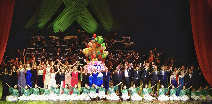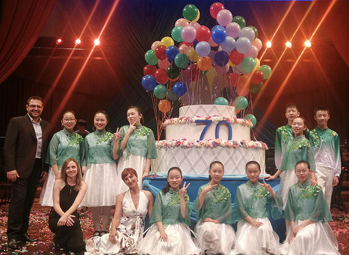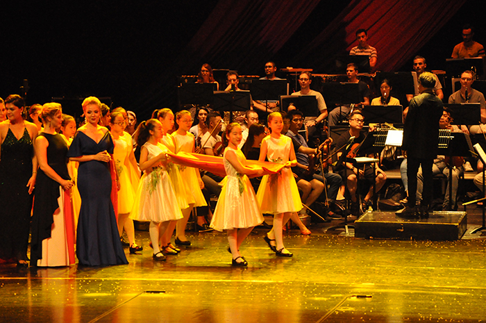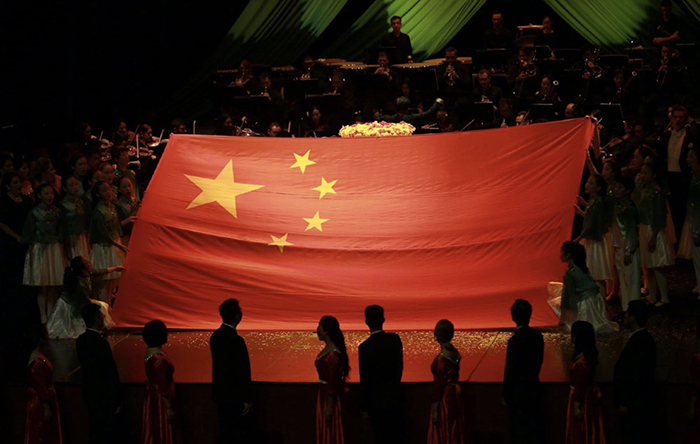 为了庆祝新中国成立70周年,整以美声唱法、交响伴奏为主,融入评弹、京剧、黄梅戏等传统艺术的表演形式,选取70年来经典传唱、鼓舞人心的音乐作品,为观众呈现一台高水准、高品质、中西合璧、跨界融合的精彩演出,展现新中国在中国共产党领导下,战胜艰难险阻,谱写壮丽诗篇的宏大主题。更令人感动的是尾声环节,艺术团孩子们清唱着《祝你生日快乐》,手托五星红旗庄重的走上舞台,并将国旗展开在舞台上,接着《我和我的祖国》响起,全场歌手合唱,这一刻大家都热血沸腾、激情昂扬,孩子们眼中闪烁着爱国的青春热情和坚定力量。