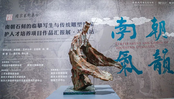 此次展览中,南京大学雕塑艺术研究所还集中展出了《南朝气韵——南朝石刻的临摹写生与传统雕塑的保护人才培养》国家艺术基金项目研修班学员们的作品。四个月来,来自全国各地的学员们深入田野寻访南朝石刻,用现代雕塑语言重新诠释南朝石刻。