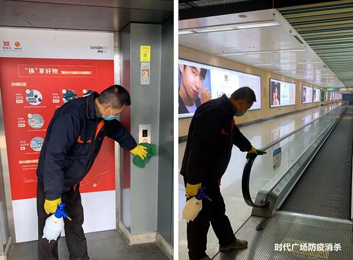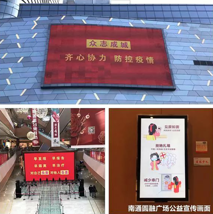 南通分公司利用圆融广场LED电子大屏及室内播放机滚动进行防控内容宣传。
