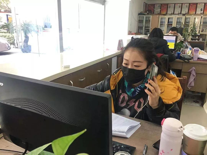 2月2日,圆融发展员工黄璜在青灯新村新镇党群服务中心,以电话问询的方式完成疫情防控的摸排调查工作。