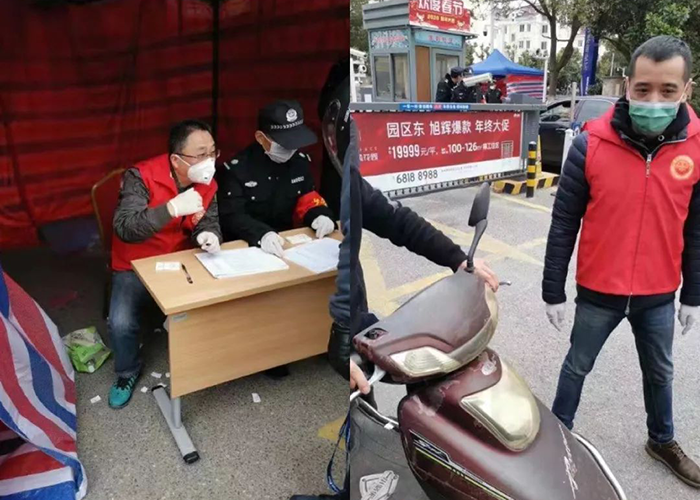 2月2日,圆融发展员工张羽在唯亭戈巷社区,配合居委会完成疫情防控的摸排调查工作。