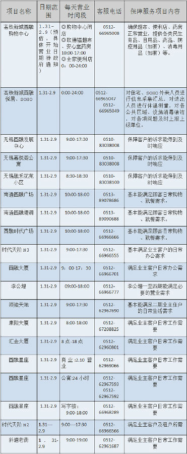 高铁新城圆融广场及圆融星座分别于1月29日及30日整体闭店,项目内除确保疫情防控必需的药店和群众生活必需的超市营业外,其它营业场所均按疫情防控要求闭店停止营业。