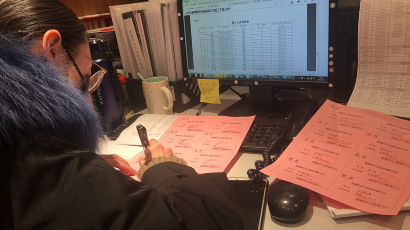 盛欣桐在加班赶制企业复工所需的人员出入证件
