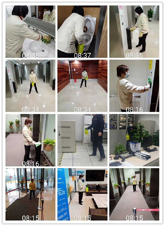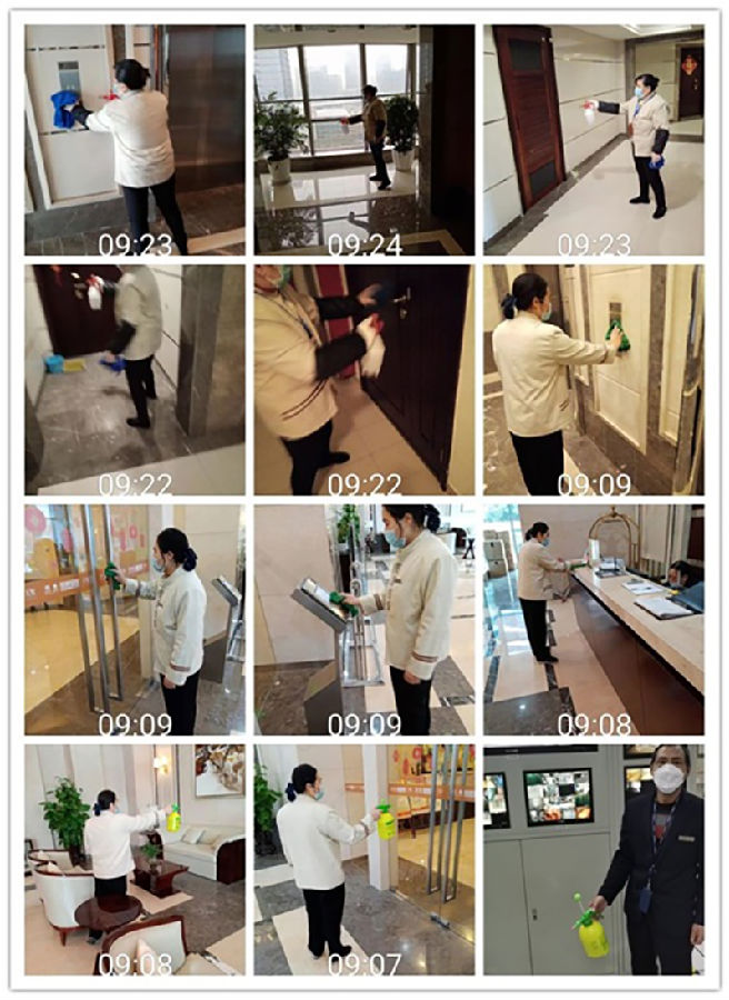 保洁部在顾建荣的带领下有序的进行每日消毒工作