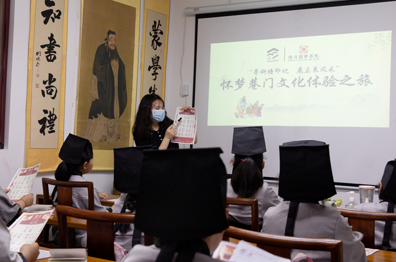 短暂的午休后,孩子们来到“传习国学”,穿上了汉服,上了一堂简短的国学课,在领略国学文化的同时,也增强了孩子们的爱国情怀。孩子们还在“沁霖馆”学习了彩绳编织,了解了中医文化。