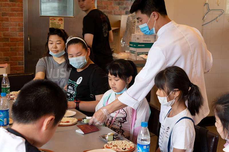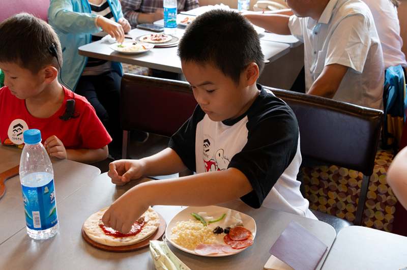 临近中午,孩子们来到“棒约翰”,准备大显身手,自食其力。志愿者一早准备好了面胚和配料,孩子们和家人一起互动,亲手制作pizza,并亲尝了自己的劳动成果。同时,“川福楼”和“馋源”两家爱心商户,送上了精美的餐点,让孩子们在浓浓的关怀和爱意中享受了一顿精美的午餐。