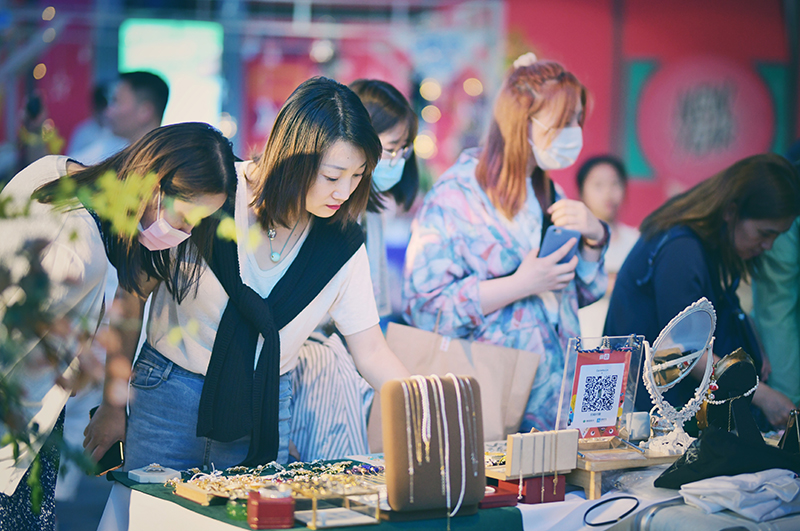 文艺小清新范儿、高颜值、高质量的“初夏YE集市”吸引了大批市民前来休闲购物。新建元圆融时代广场的初夏YE市集,不是为了做市集而做市集,而是与其消费群、品牌、建筑风格和氛围相融合,通过绿色、运动、健康的方式带来全新的生活理念和态度。首先摊位场景、趣味化,与项目内的商家外摆氛围相辅相成,疫情当下贴心考虑,创意人群分流,场景式市集,打造沉浸式绿色体验;其次装饰个性、特色化,创意的门头、招牌作为个性的标签,创意体温贴纸作为疫情的守护小站;再次商家潮流、个性化,近半数商户是与圆融项目内的商家联动,增加知名度,同时引进上海特色资源及创意网红商家,吸引年轻客群。