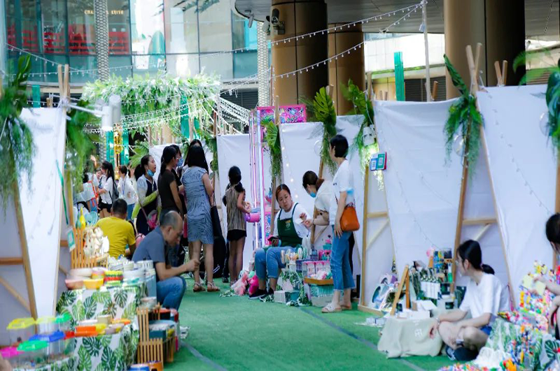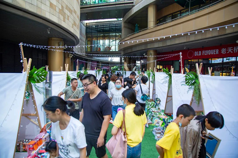 城市里的美好从来都不会少,负一楼下沉式广场同期举行的微醺雨林文创环保集市,游走于文艺、清新又有趣的市集摊位之间,融合新潮、趣味、摩登、艺术,似乎藏着人们对自然对生活的热爱,文艺又烟火,清新又有趣。