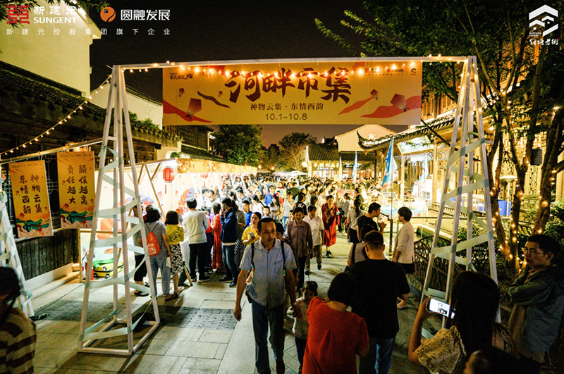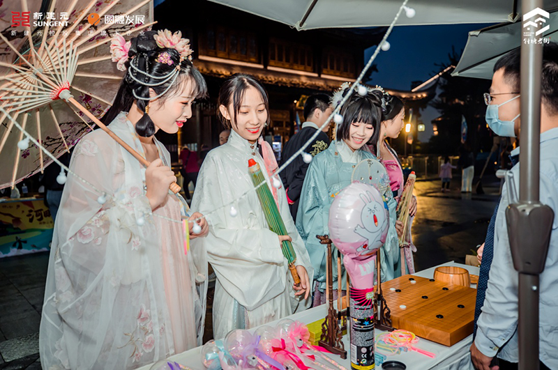 此外,为了给市集增添更多的趣味性,结合斜塘老街苏式园林式街区的建筑特色和整体灯光亮化布置氛围,河畔市集每天都安排了丰富的互动演绎活动。