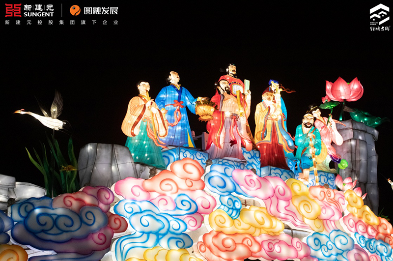 本次新建元圆融特邀苏州灯彩项目国家级非物质文化遗产代表性传承人汪筱文团队,在斜塘老街项目进行了整体灯光亮化布置。活动期间共展中国神话故事系列主题的苏州灯彩主景灯3组,观景灯6组,还有各种氛围装饰花灯1000多个。