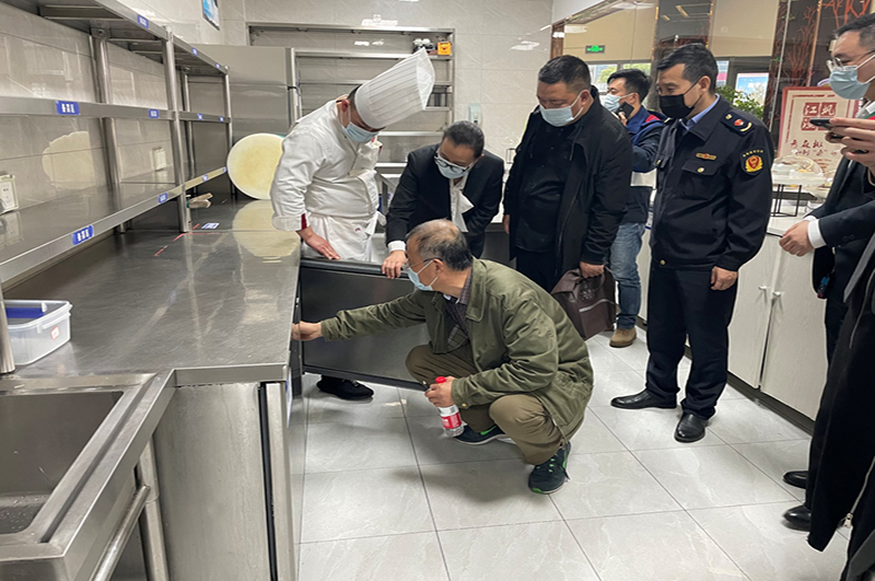 随后,在项目餐饮商户食品生产经营店内,检查人员重点检查了证照公示、等级评定、餐具消毒、索证索票制度、环境卫生、生熟分开、专间管理、复炸用油管理和食品生产经营自律快检等情况进行了检查。