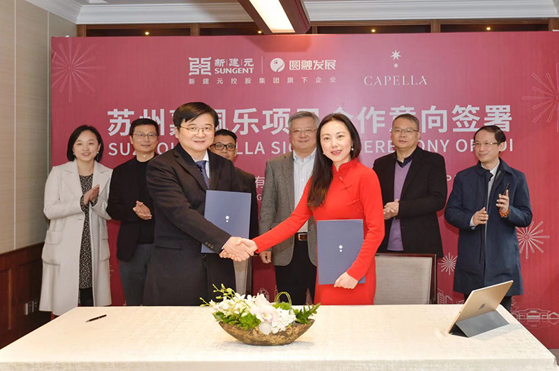 新建元旗下圆融发展专注于商业旅游地产开发,与嘉佩乐酒店集团有着良好的合作基础。双方达成战略合作意向后,圆融发展将以集团商贸领域发展布局为纲要,进一步聚焦商业地产主业,引导自身产业链整合、运营模式创新与嘉佩乐酒店集团的客户体验营造相互促进,将酒店打造成苏州乃至全国度假酒店全新地标项目。