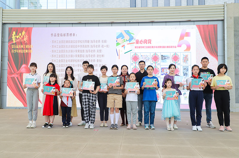 每一个孩子都有无穷的潜力,本次比赛以“童心向党”为主题,细化为菁菁校园、非凡园区、我爱我家、经典传承、数字未来等5个参赛主题,吸引园区中小学百余所学校近10万学生积极参与,共计收到参赛作品3000余件,经过专家评审激烈探讨和综合评定,在众多优秀作品中共计选出个人及团队奖158件,并精选其中25幅作品荣登国家邮政个性化邮票,透过“邮票”这一独特的视野,展现了孩子们用彩色画笔涂写浪漫的世界,感悟美好的生活,同时也展现了新时代少年儿童文化艺术教育的优秀成果。此外,部分获奖学校的学生在现场也带来了精心准备的朗诵、合唱和独轮车表演等节目。孩子们青春活力的身姿,热情洋溢的笑脸,无不彰显着青春的美好与活力。