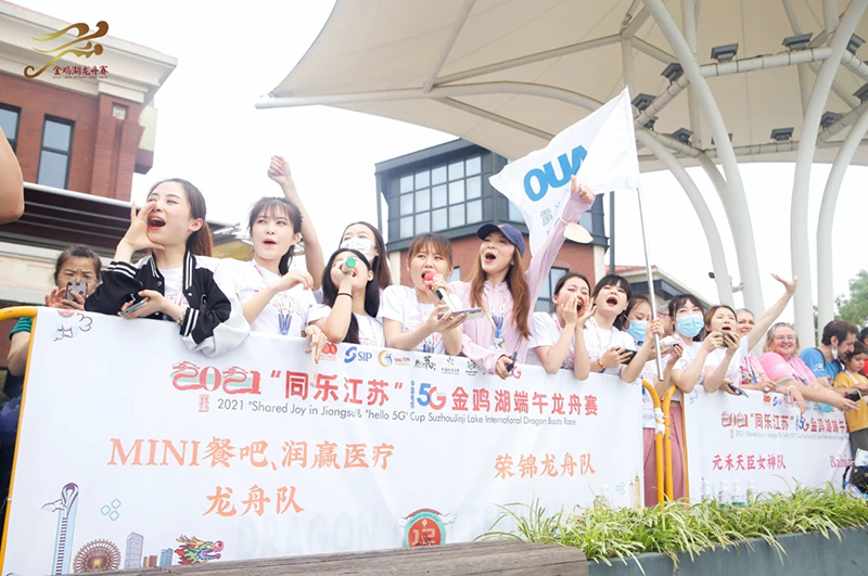 2021年6月14日上午,2021“同乐江苏”中国电信“hello 5G”杯金鸡湖端午龙舟赛在新建元·圆融发展旗下商旅文项目月光码头擂鼓启航。本届赛事由江苏省人民政府新闻办公室指导,苏州市委宣传部、苏州市体育局、园区管委会主办,新建元控股集团(圆融体育)承办。