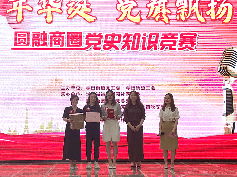 2021年6月25日下午,由南通市崇川区学田街道党工委、学田街道工会主办,新建元控股集团旗下圆融南通公司党支部承办的“百年华诞 党旗飘扬” 中国共产党成立 100 周年党史知识竞赛活动在南通圆融广场项目举行。竞赛活动共设置必答题、抢答题、风险题等三个环节,比赛过程高潮迭起、扣人心弦,各队选手均表现出色,充分展示了党员干部扎实的党史理论知识基础和争先进位的精神风貌。经过紧张激烈的比拼,最终南通蓝天救援队代表队领先勇夺一等奖,太平洋人寿保险代表队荣获竞赛二等奖,圆融南通公司代表队也荣获此次党史知识竞赛的三等奖。