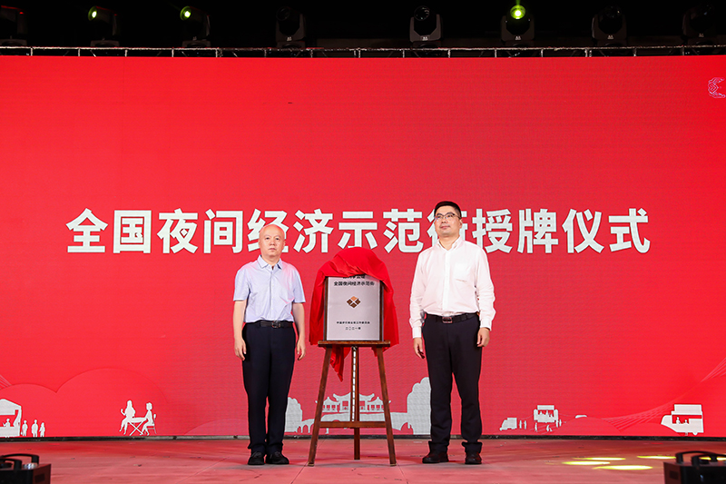 随后韩健徽与孙扬澄共同为李公堤 “全国夜间经济示范街” 揭牌,李公堤正式被授予“全国夜间经济示范街”荣誉。