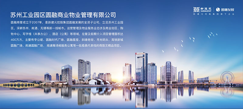 近年来,在新建元控股集团、圆融发展的总体部署下,圆融商管聚焦主营业务,推进多元发展,形成了以商业物业运营管理为主、高端商务物业和公用物业为辅的发展格局。目前在管及前期介入项目遍布苏州、南通、无锡、宿迁等城市,管理面积达400万方,成功打造了李公堤、圆融时代广场、圆融星座、斜塘老街、南通圆融广场、南通雅诗阁服务公寓等一批具有代表性的商旅文精品项目。