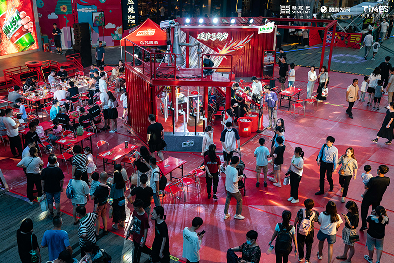 此次圆融时代广场携手原创IP浪小慢发起城市浪慢计划,集结夏日浪慢主理人、潮流青年及啤酒、音乐、文创、时尚周边等市集摊位,融合多种潮流元素和品牌资源,共计70+摊位,配合大型浪慢气球装置、超大沙池、5小时不间断精彩DJ、乐队等丰富的演艺活动,致力打造好玩、有趣、时尚的天幕市集品牌。