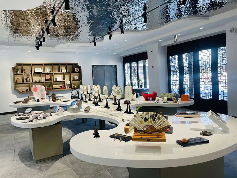 它是一处商业街区,汇聚了来自苏州的书香府邸旗舰店、宿迁本地特色店“金辉盛筵”、主打生猛海鲜的“渔舟村”、美味地道的苏帮菜馆“小园楼”等特色商户;它是一处园林景区,有“皱瘦漏透”的太湖石翼云峰、寓意长寿的涵碧轩山花、仿若仙境的蓬莱庭院以及粉墙黛瓦、飞檐翘角、垒石堆山、小桥流水等;它是一处文化社区,有老字号中医馆雷允上、凝结苏宿情谊的苏宿工业园区城市展览馆、展示“百匠赋新”的苏工苏作馆,汇集了苏州最具代表性的灯彩、核雕、宋锦、明式家具、船点、苏绣等手工艺作品。