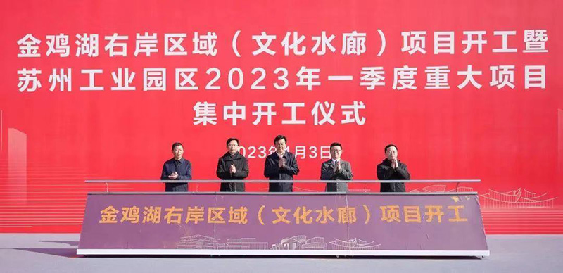 1月3日,在金鸡湖右岸区域(文化水廊)项目开工暨苏州工业园区2023年一季度重大项目集中开工仪式上,由新建元圆融参与开发建设的苏州中环广场、苏州文华东方酒店、苏州当代美术馆等金鸡湖右岸重点项目集中开工,奏响高质量发展“最强音”,展示新年新气象,全力冲刺“开门红”。