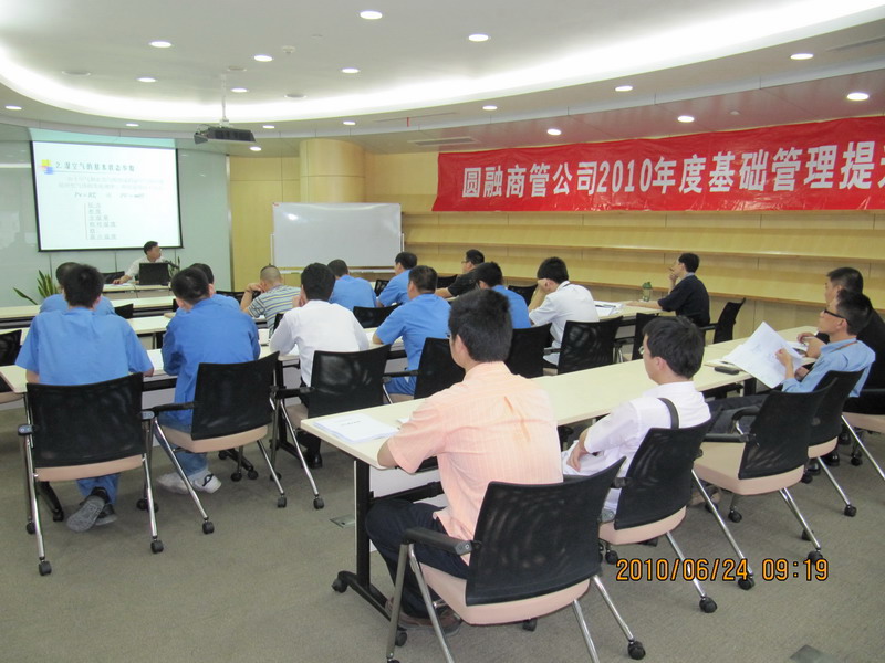 2010年6月24日,圆融商业管理公司2010年度基础管理提升系列培训之中央空调系统培训在圆融大厦19楼6号会议室举行,管理本部和各项目相关人员参加了培训。