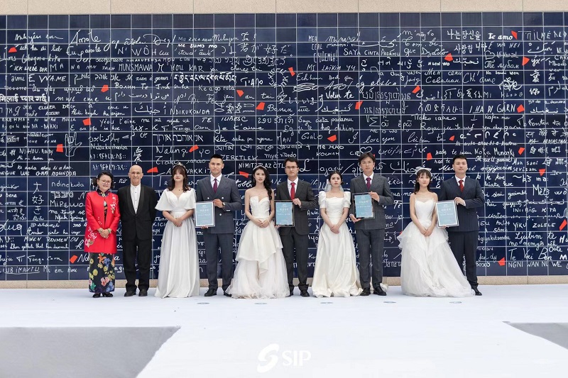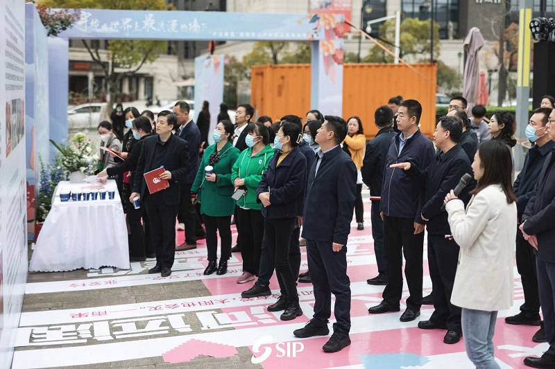李公堤积极营造婚俗改革实验区建设,现场展示了文化市集、打卡点、历史墙等丰富多样的内容。活动现场,民政部、江苏省民政厅、苏州市民政局、园区社会事业局、新建元控股集团旗下圆融发展公司相关领导共同为“中法爱墙”结婚登记户外颁证基地揭幕。