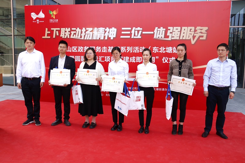 本次圆融嘉悦汇通过政府部门联合竣工验收,以现场出具的竣工联合验收意见书直接备案,企业无需再单独办理;锡山区大数据管理和政务服务局(区行政审批局)及东北塘街道行政审批局为已签约的商户提供上门服务,现场同步办理和发放营业执照及大礼包,并进行社保、医保、税务、公积金等相关业务辅导,让商户真正感受到了锡山政务服务的超前辅导和精准服务,为圆融嘉悦汇的顺利开业打下了强有力的基础。