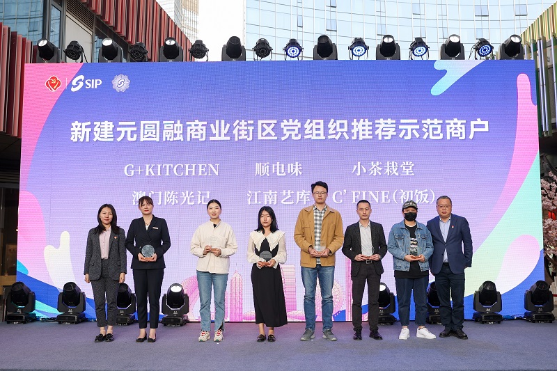 为繁荣商圈经济,根据“机关带行业”机制,自贸区综合协调局牵头成立苏州工业园区商超行业党建联盟,首批成员单位包括金鸡湖商务区党工委、圆融商业街区党委、苏州天虹党支部、园区商联会党支部等19家党组织,将协同筑牢行业党建基础、搭建合作平台,打造城市时尚新典范、凝聚潮流新优势。G+KITCHEN、顺电味、小茶栽堂、澳门陈光记、江南艺库和C’FINE(初饭)等6家圆融商业街区党组织推荐示范商户获得表彰,激励商户立足自身主营业务、全力支持商圈党建工作,积极奉献爱心公益事业,进一步激发商圈发展“红色动能”。