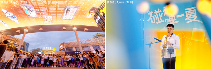 在天幕市集现场,消费者们可聆听到爵士、管弦乐、乐队、民谣等150场次演出。知名爵士乐团磁乐队带你感受夏日优雅,百人随机舞蹈,随机唱跳等,嗨翻现场!