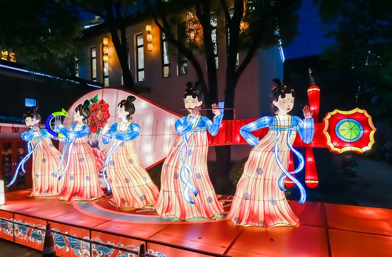 本次斜塘老街中秋灯会以“江南花月夜”为主题,结合国家级非物质文化遗产苏州灯彩及斜塘老街园林式街区建筑特色,与国家级非物质文化遗产苏州灯彩项目国家级代表性传承人——汪筱文老师及其团队合作,从诗歌、书画、乐舞等方面,深入挖掘传统审美精神、审美趣味和审美风尚元素,通过灯彩组景的形式呈现。