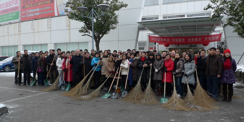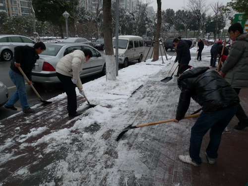几天的降雪给苏城披上了一层白色的大衣,厚厚的积雪也给市民的出行安全造成了隐患。1月21日清晨,圆融集团的全体员工来到湖东邻里中心展开了扫雪行动,为周边居民创造一个良好的出行环境。