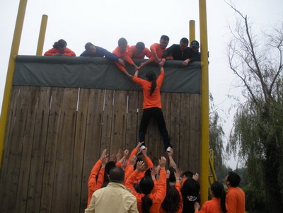通过鳄鱼潭项目的学习,学员们了解了竞争与合作的关系,有效的分工协作、创造性的解决问题。最后的求生项目将整个培训推向了高潮。所有学员在不借助外力的情况下,团结一致,爬过了四米高的墙面,圆满结束培训。