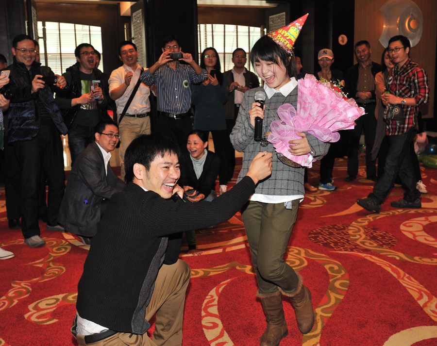 浓浓的大家庭氛围温馨感人、引人向往,一位员工更被这美满温馨的场面所触动,向一同参加活动的女友现场求婚,并送上甜蜜悠长的一吻。所有同事和家属们见证了这浪漫一幕,纷纷恭喜他们找到了自己的幸福,送上亲密同事之间深深的祝福。