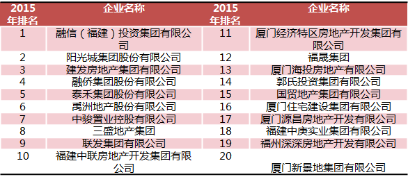 2015中国房地产开发企业福建省20强