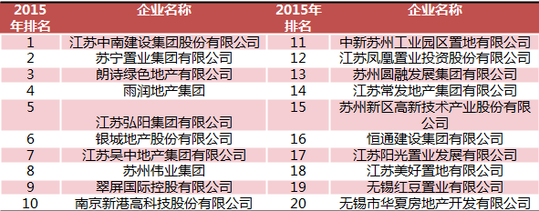 2015中国房地产开发企业江苏省20强
