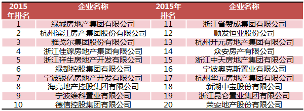 2015中国房地产开发企业浙江省20强