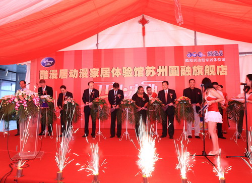 7月1日,圆融时代广场生活休闲区,集美国迪士尼、美国时代华纳、美国孩之宝等世界级动漫品牌为一体的一站式、乐园式、体验的酷漫居动漫家居体验馆苏州首家店正式对外营业,苏州工业园区工委副书记杨建中、中新集团副总裁吴天仁、圆融集团副总裁沙勇和来自华特迪士尼大中华区董事总经理Stanley Cheung等共同参加了“酷漫居动漫家居体验馆”开业揭幕仪式。